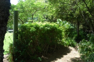 Near the swing gate and also the north-east corner of the property can be found the last remnants of the hedge of Tecoma capensis. Tecoma is native to South Africa and is also known as Cape Honeysuckle. The hedge once surrounded all the front garden.