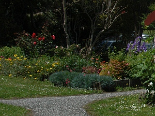 These three raised flower beds are the remaining flower beds from Mary Williams garden layout, which once sprawled all over the rear service garden area. While they are in what is known as the rear service garden, they provided flowers for the house. The beds are now cared for by volunteers and always have a good showing. Where possible heritage plants are used for planting. |