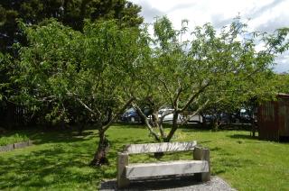 Separated from the rest of the orchard, by the well head and the pump house, are some fruit trees and a vegetable garden. There was once a further vegetable plot on the flat area on the other side of the stream. In this part of the garden are; a mandarin tree, (Citrus reticulata), - [20 on the map]; two nectarine trees, (Prunus persica cv) - [17 on the map]; and a peach tree, (Prunus persica cv), - [18 on the map]. Nectarines are not a different species to peaches, as is often thought. Even though they are marketed as different fruits, they are really just different cultivars of the same species.