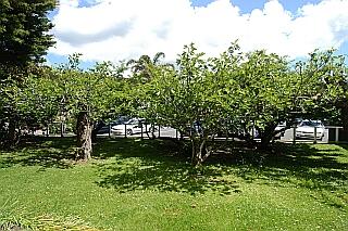 The orchard in the north-west corner of the property has been established for many years. The trees in the orchard are mostly fig trees, (Ficus carica), - [21 on the map], and plum, (Prunus domestica), - [22 on the map]. There is also one large loquat tree, (Eriobotrya japonica), - [23 on the map]. These trees in the orchard are very attractive to the native pigeon or kereru, (Hemiphaga novaeseelandiae), which eats the fruit. [Kereru are also known as kukupa and kuku in Northland.]